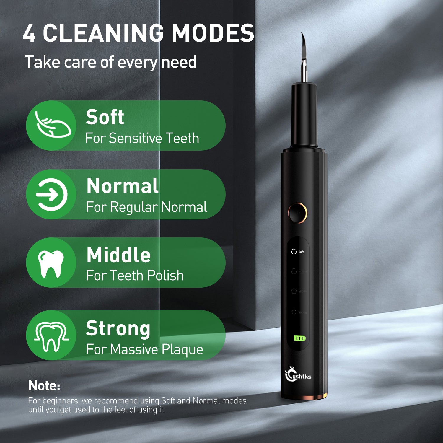 - Safe & Protect Your Gums: This electric teeth cleaning kit only works on teeth or hard objects, stop vibrating when touching gums and soft skins. It won't hurt your gums, please use it with confidence. You can start from the soft mode, and be fully charged before use.