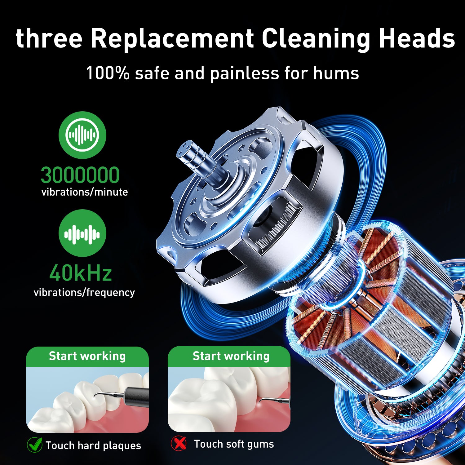 Plaque Remover for Teeth - Tartar Remover for Teeth, Dental Calculus Remover Teeth Cleaning Kit 4 Speed Modes with 4 Replaceable Heads, IPX6 Waterproof with LED Light