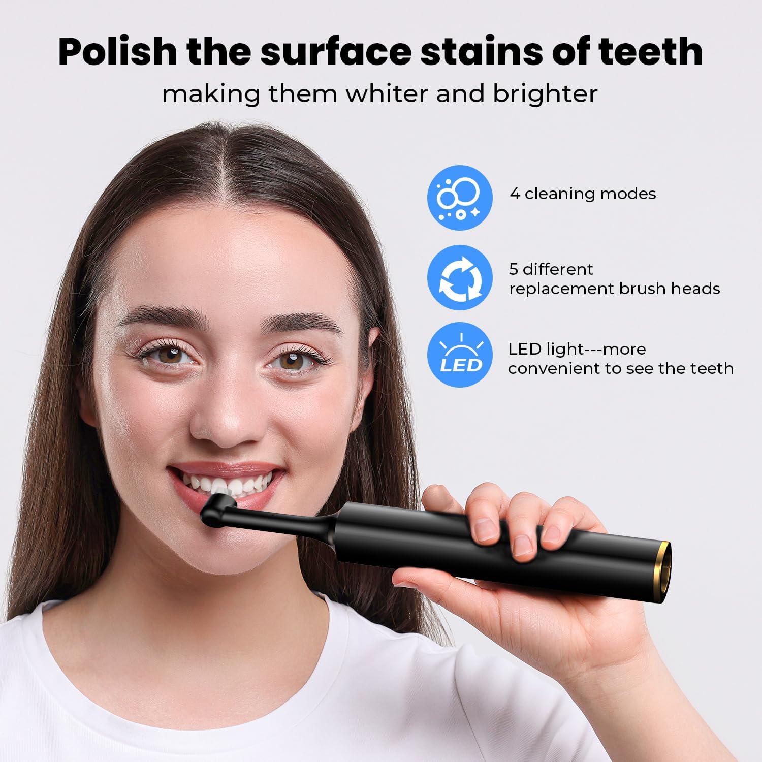 Tooth Polisher, Tooth Clean and whitening kit, 5 Multi -Function Brush Heads and LED Lights, 4 Speed Modes, and IPX6 Waterproof, Handsel 3 Tooth Polish Paste